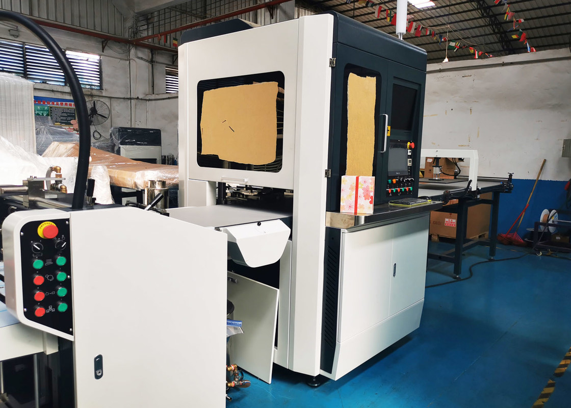 Bucheinband, der Maschine herstellt, die Papierlaminierung und steifen Kasten auch tun kann. Diese Maschine wird auch als Kleben und Aufklärermaschine genannt. Sie kann klebende und klebende Fallpapiergebundene ausgabe auf dem geklebten Papier beenden automatisch, das für den steifen machenden Kasten weitverbreitet ist, der machende, Papierauskleidung und sogar Album Bucheinband, Spielbrettherstellung.