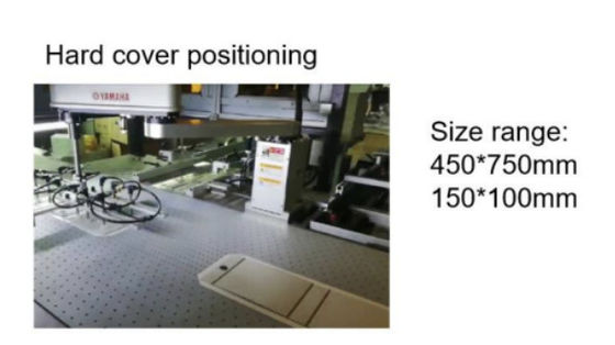 Die automatische Seite des festen Einbands vier, die Maschine herstellt, wird die gebundene Ausgabe faltend angewendet. Sie hat Eigenschaft zwei: der Gurt, der Seite und Förderer des festen Einbands vier drückt.